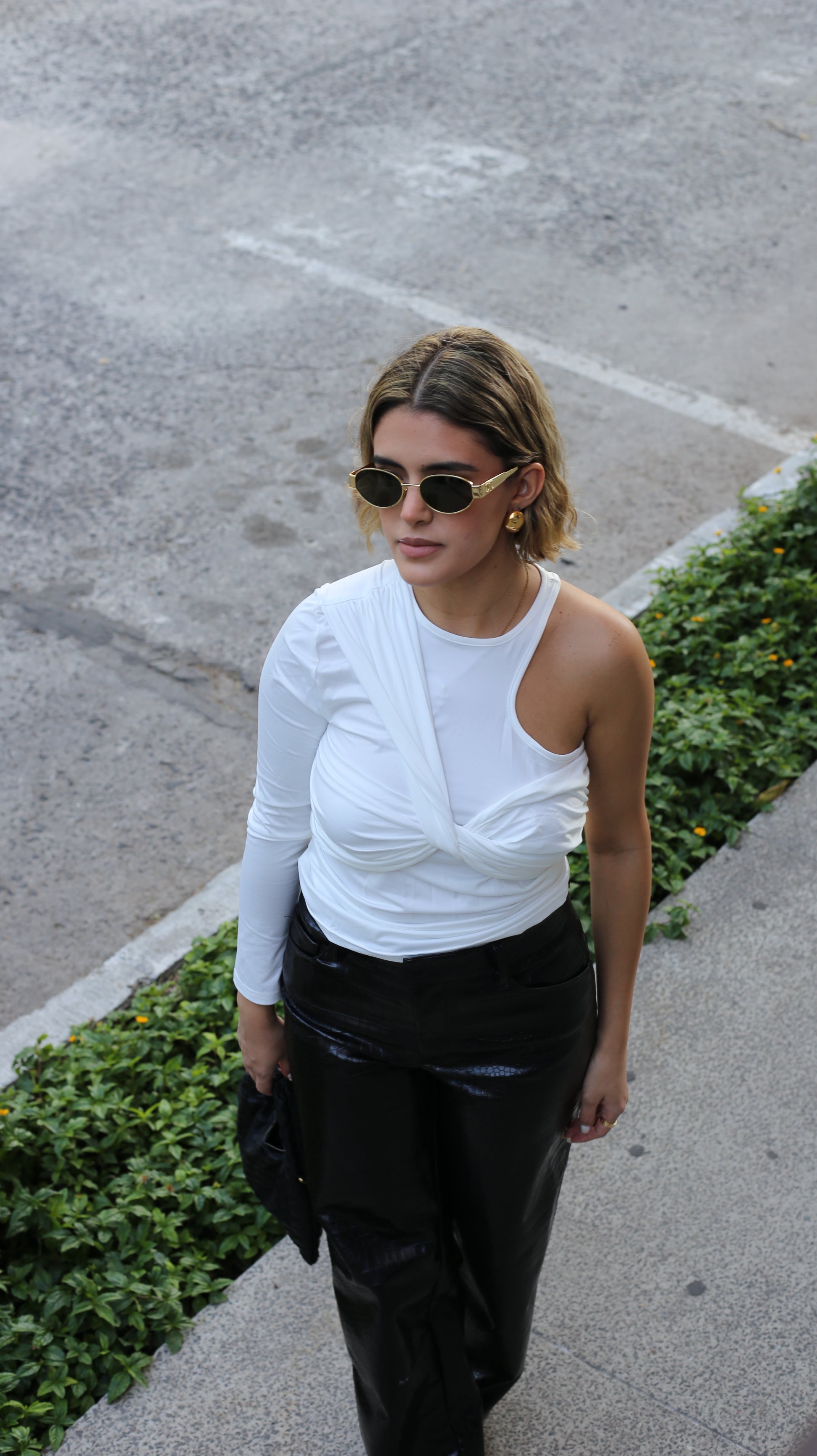 Top de una manga y moño en la parte de enfrente.