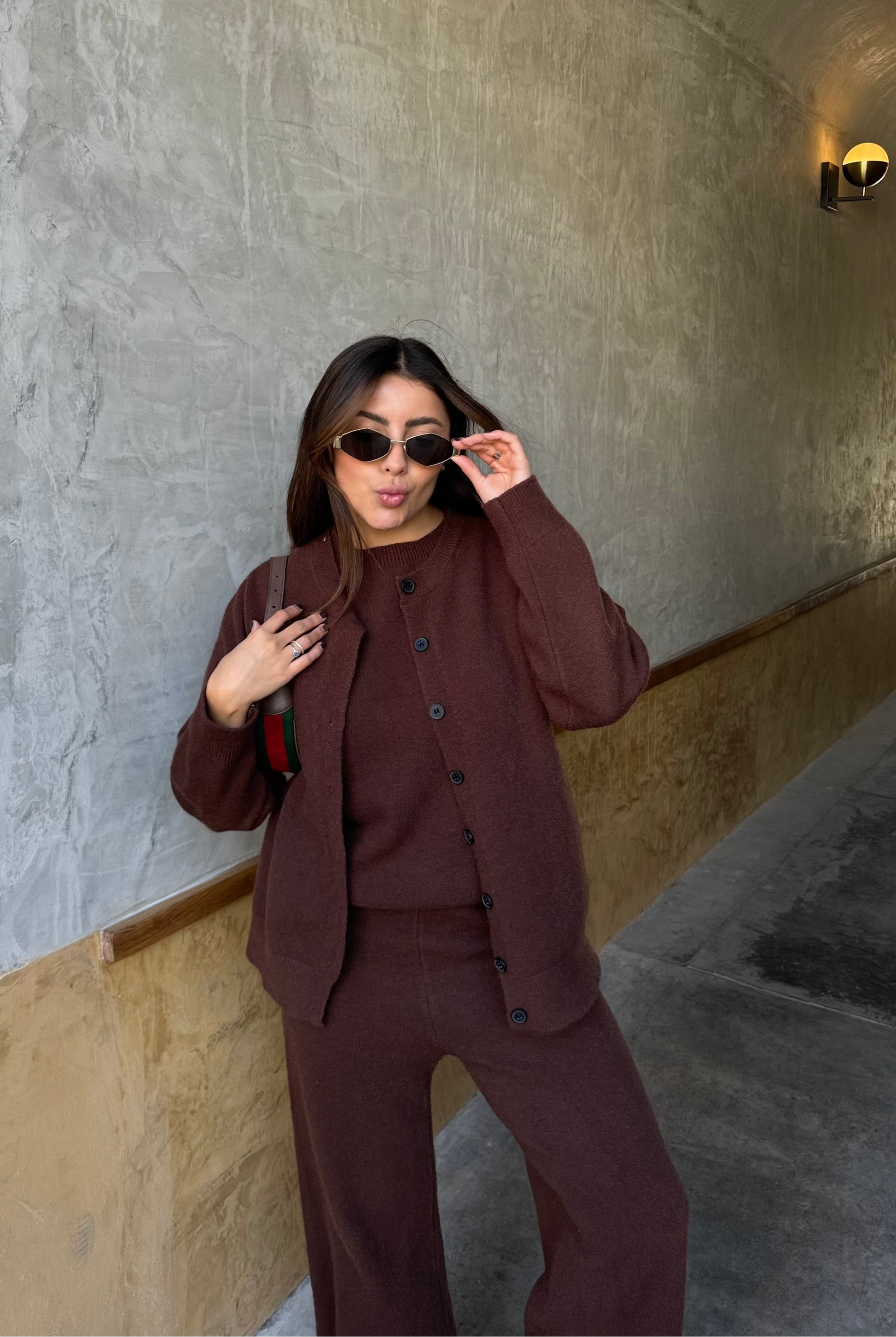 Pantalón con resorte, cuello redondo manga corta y suéter manga larga con botones